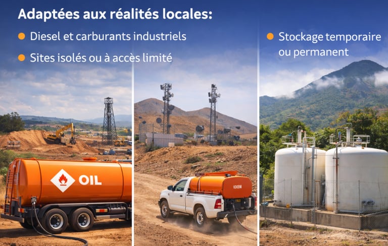 Nous facilitons la mise en place de solutions de livraison de carburant directement sur site, sécurisées et adaptées aux réalités locales :